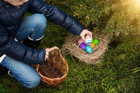 Pâques ne va pas sans la traditionnelle chasse aux oeufs de Pâques qui sont déposés dans les jardins selon la tradition par la cloche de Pâques, ou le lapin de Pâques.