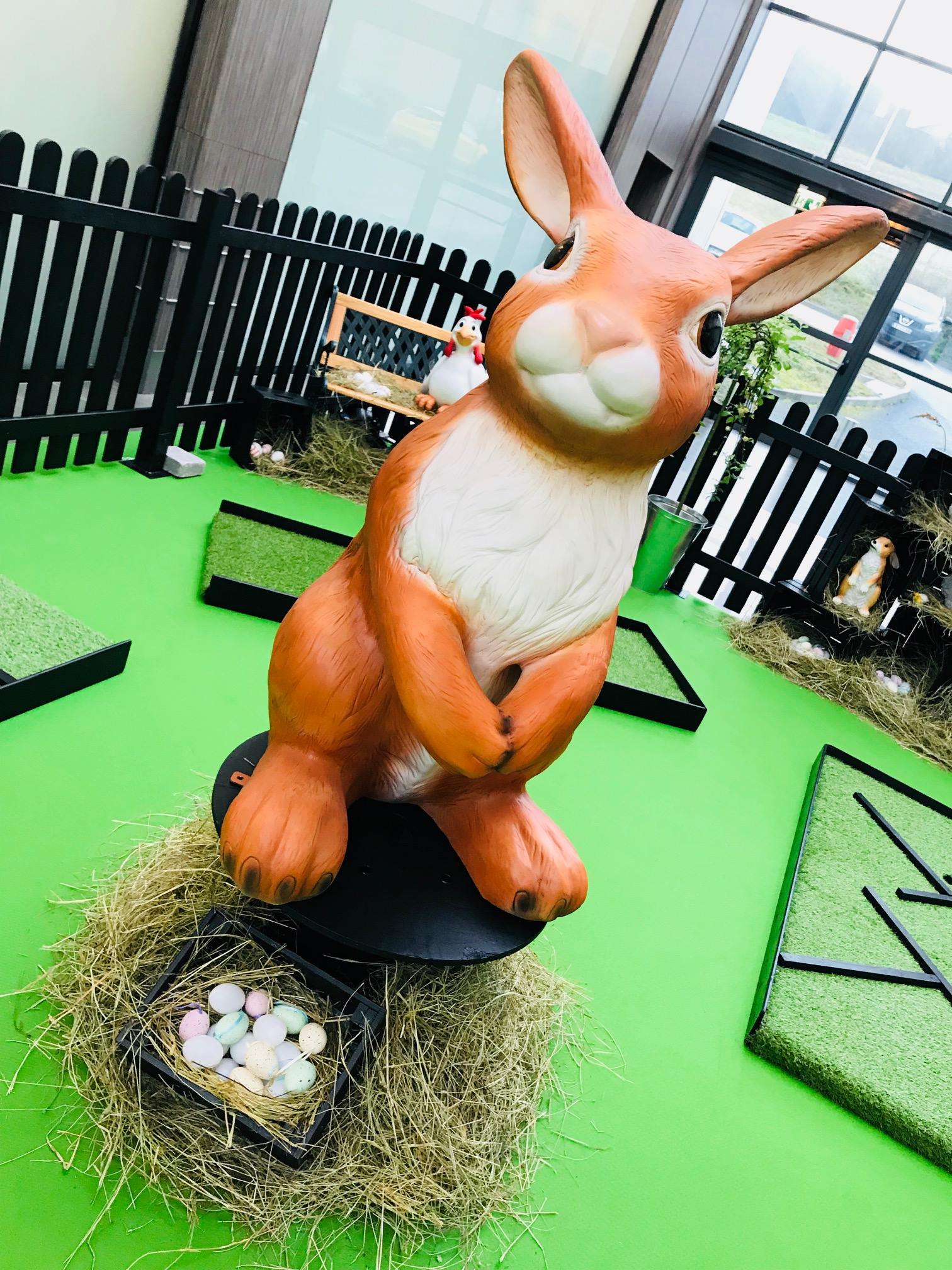 Oeufs et lapins géants, cloches de Pâques, labyrinthe thématisé, et autres éléments de décoration mythiques et symboliques vous transporterons dans une ambiance de printemps frais et bucolique.